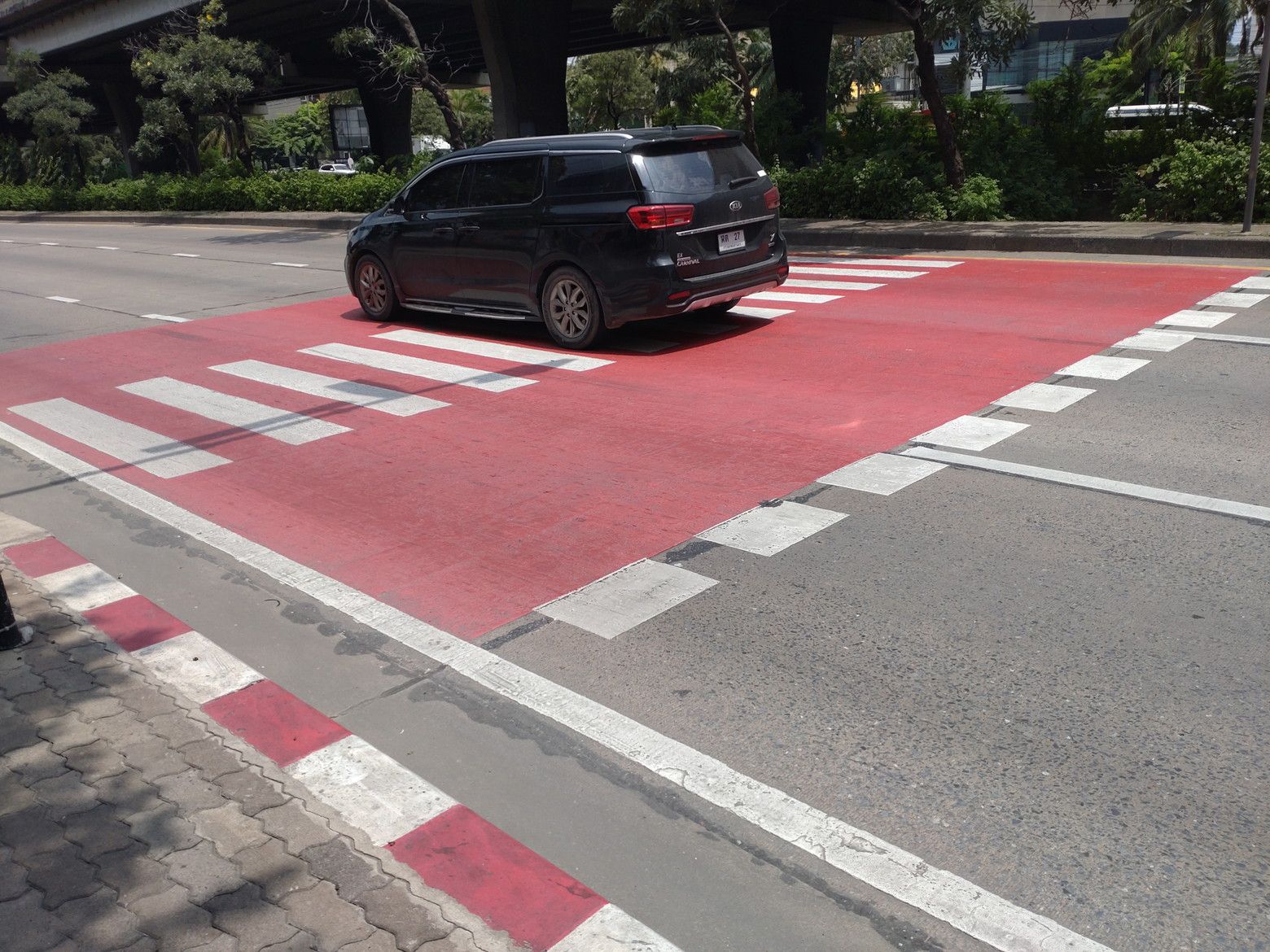 ロータスを出てからは。。。 バスに乗る為にも、反対側へ行かなければならないのですが、車が高速走行をしている3車線の道路の横断歩行を渡らなければなりません。