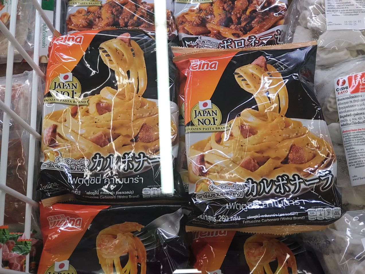 嬉しいですね。セントラルなどのショッピングモールでは見掛けません。 色々な料理がありました。 卵の生食が出来る商品もあったので購入です。 冷凍食品のコーナーへ行くと、カルボナーラがあるじゃありませんか!