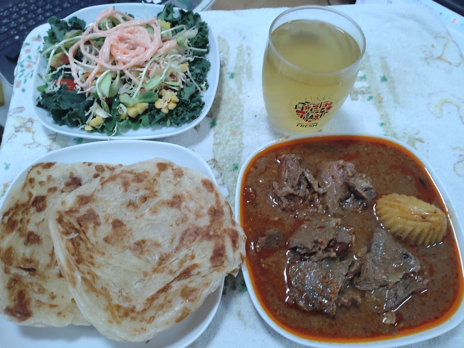 今回は、牛肉のマッサマンカレーとロティのセットを注文です。