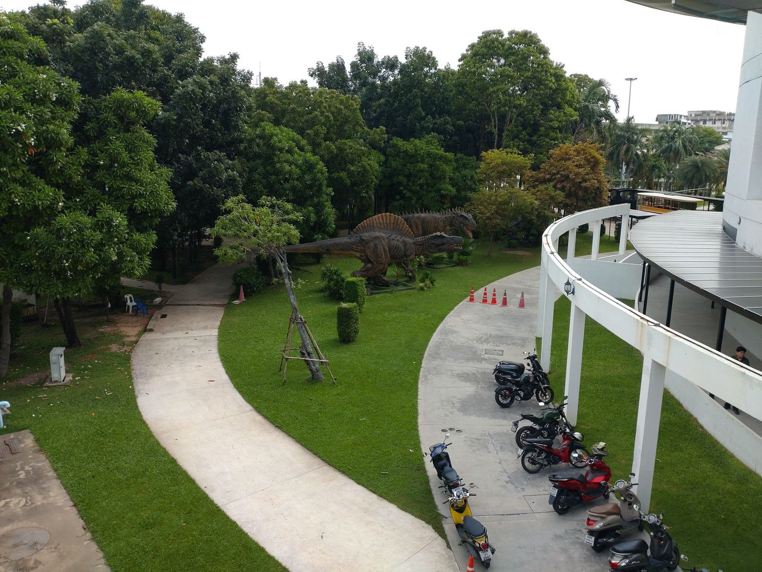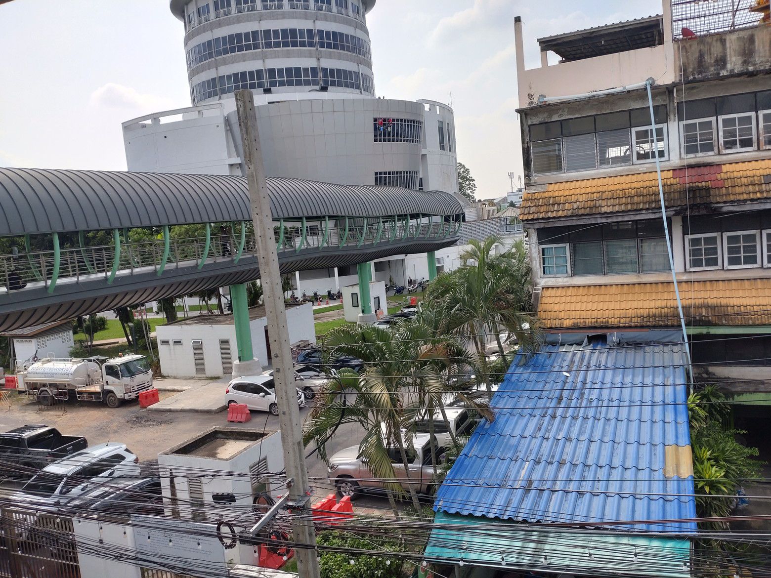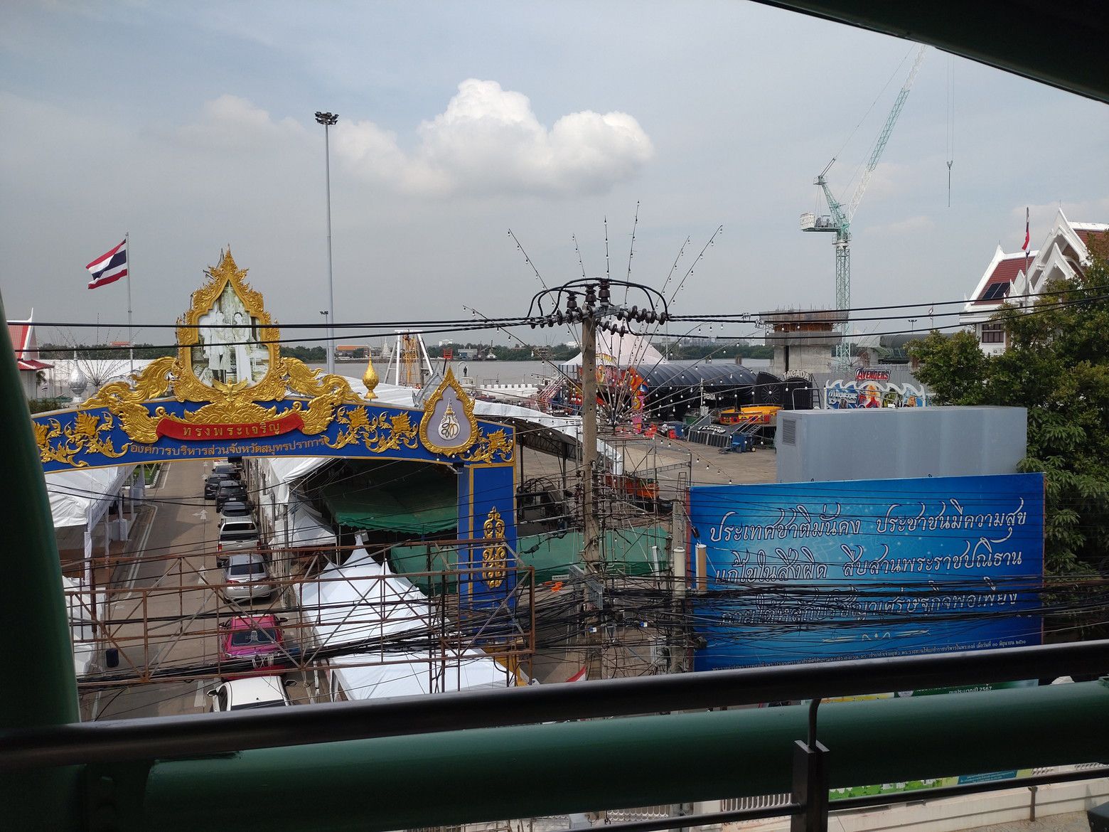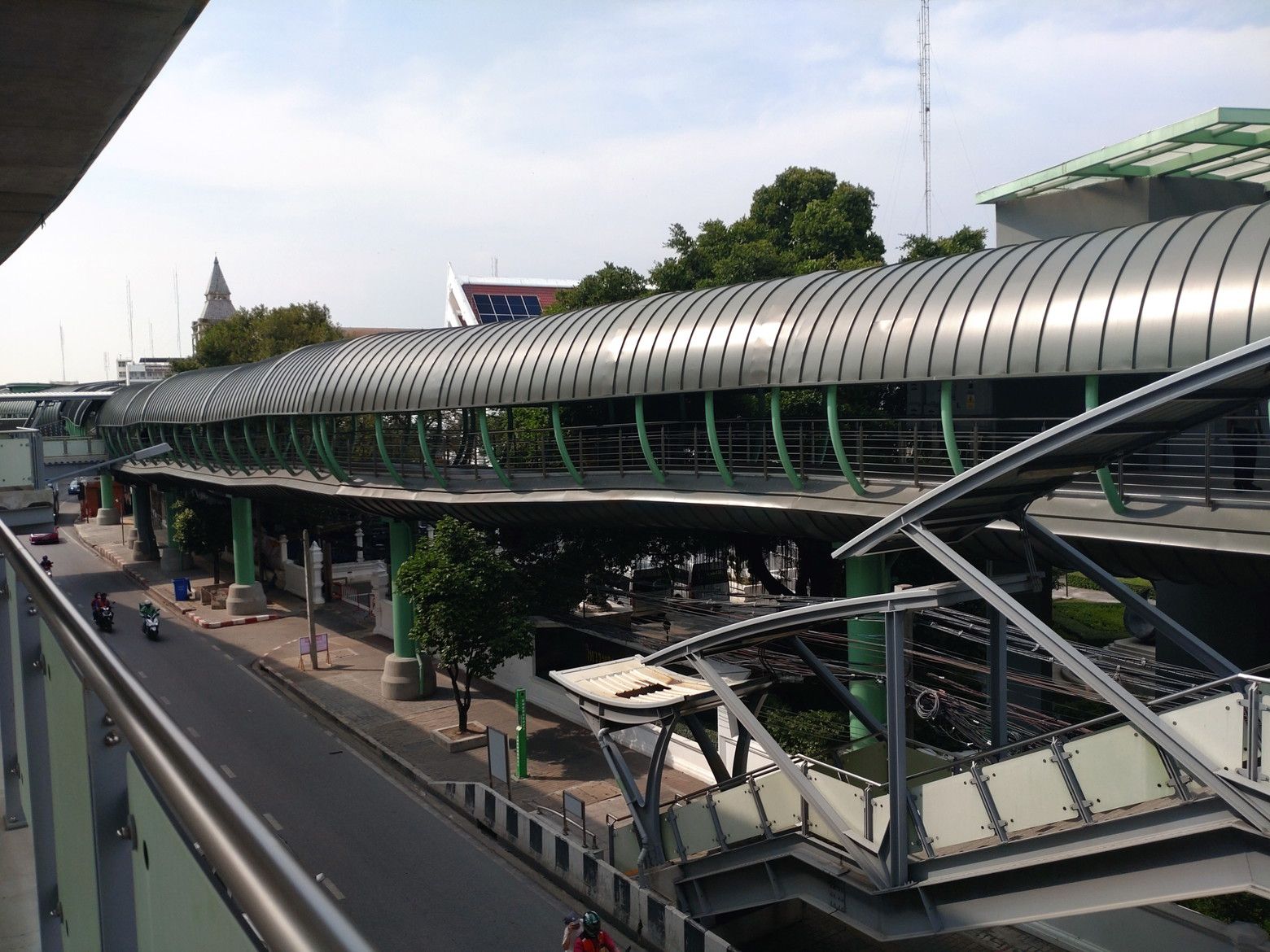 随分前から建設中だった、BTSパクナム駅からサムットプラカーン展望台へ直結するスカイウォークが開通したとの情報を得て行ってみる事にしました。 駅から展望台を見てみると。。。 こんな感じで、やや距離があるんです。