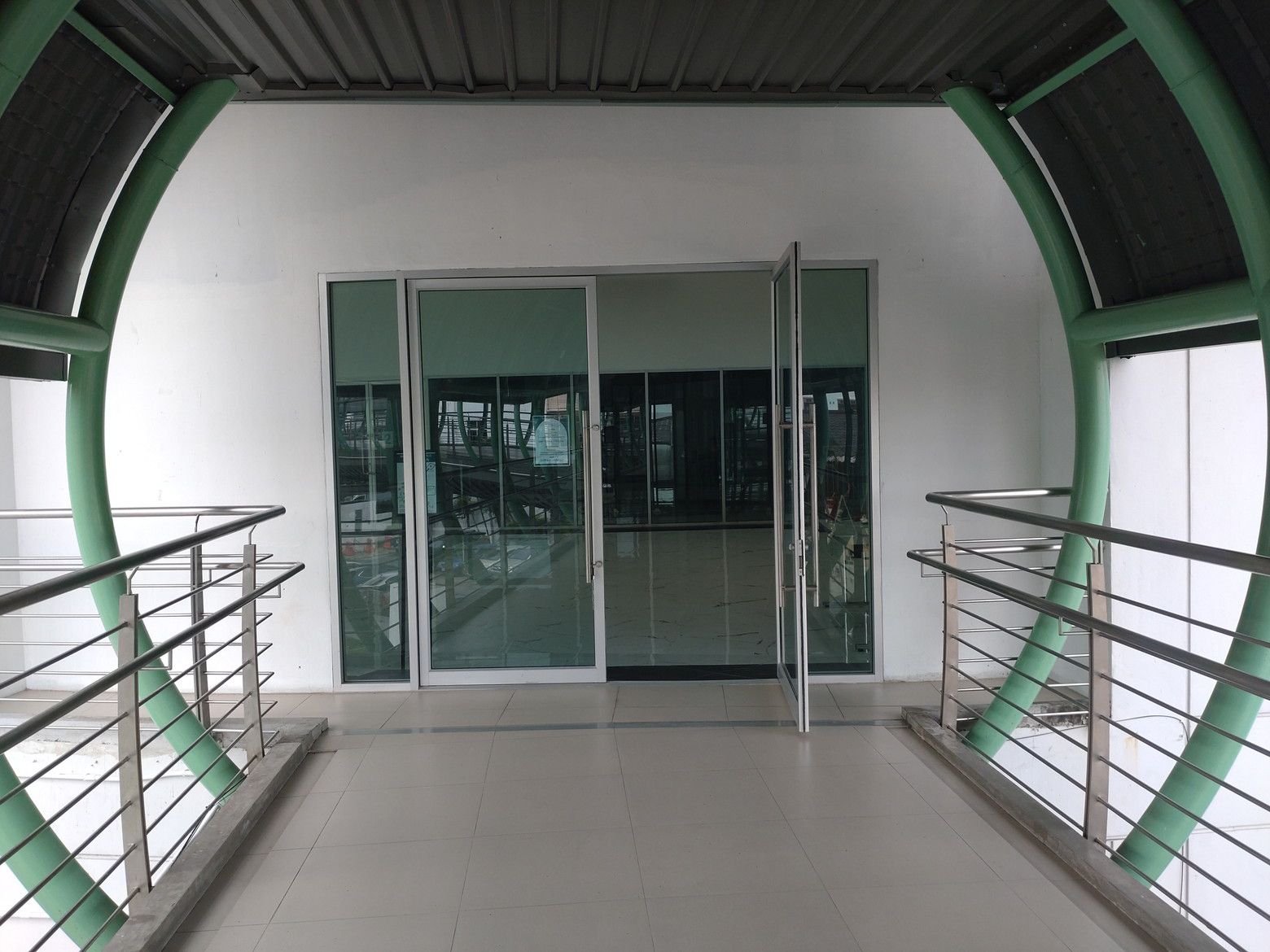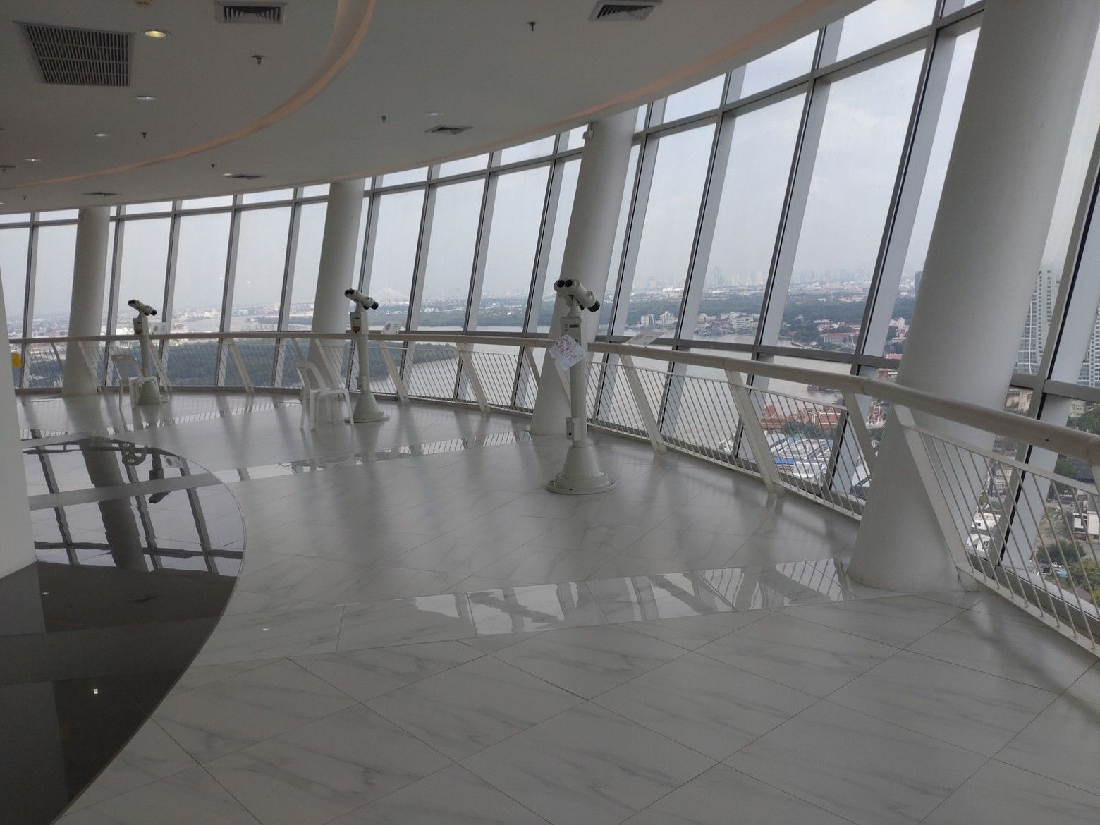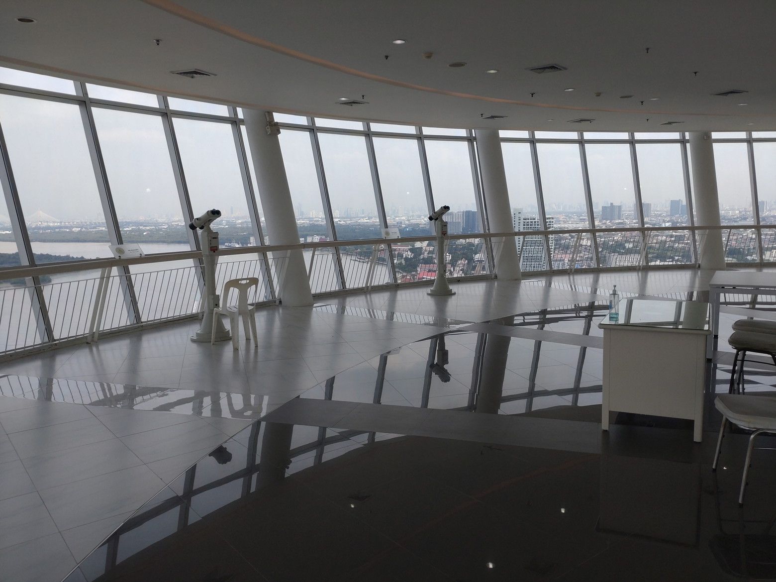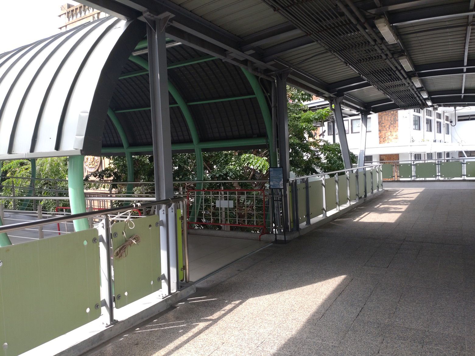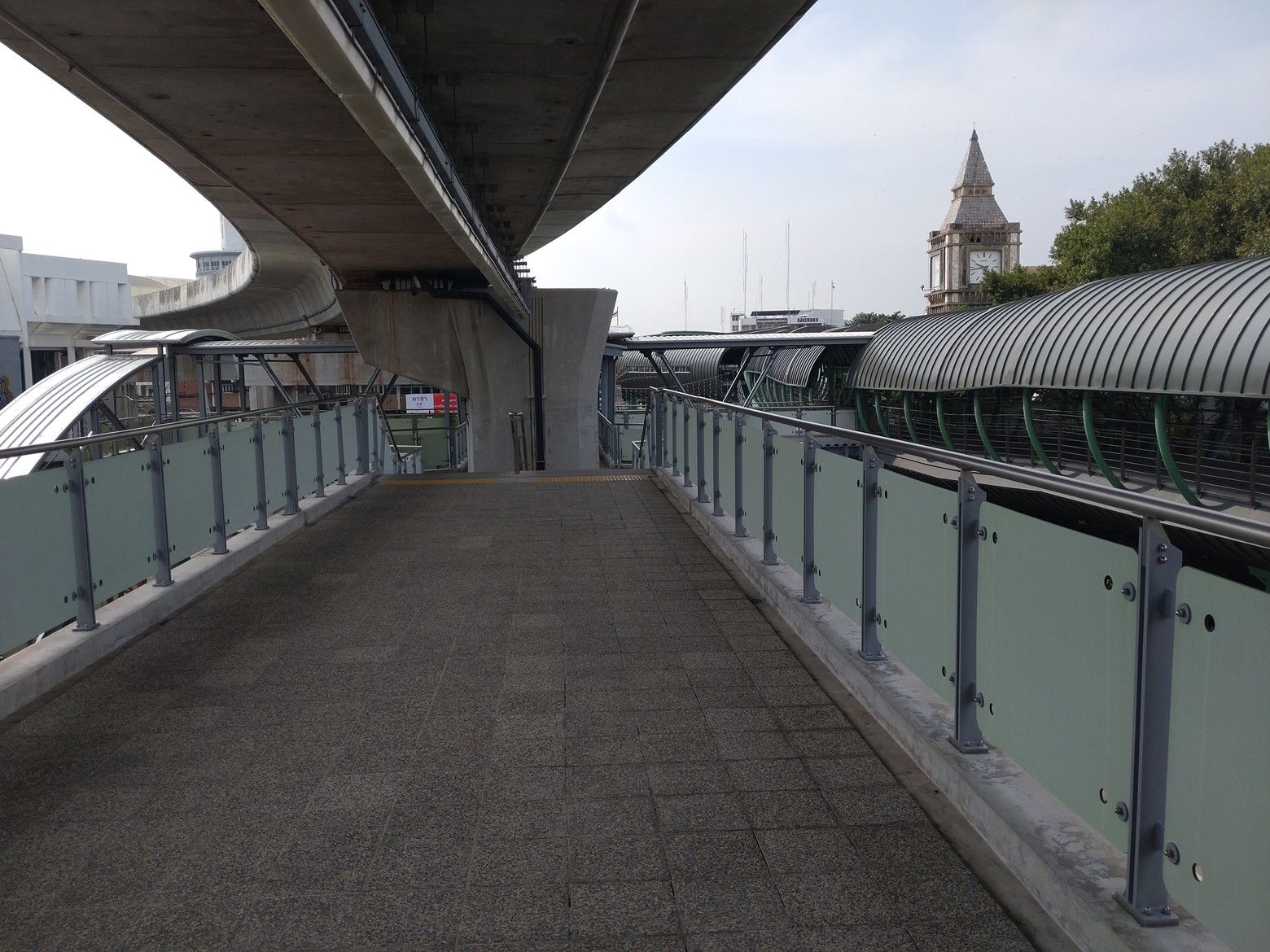 今までは、行く為には横断歩道を渡ったりと、少し時間が掛かりました。 これが、完成したそうなんです。 行ってみましょう! これが、入り口です。 入ってみると、御覧の通りで、広い通路です。 基本的に、通路の両脇はガラス窓なのですが、数カ所には外を展望できる個所もありました。 5分足らずで、此処まで来れました。 そして入り口です。 エレベーターで23階へ向かいます。 オープン直後、10時です。 最高ですね! パクナム駅です。