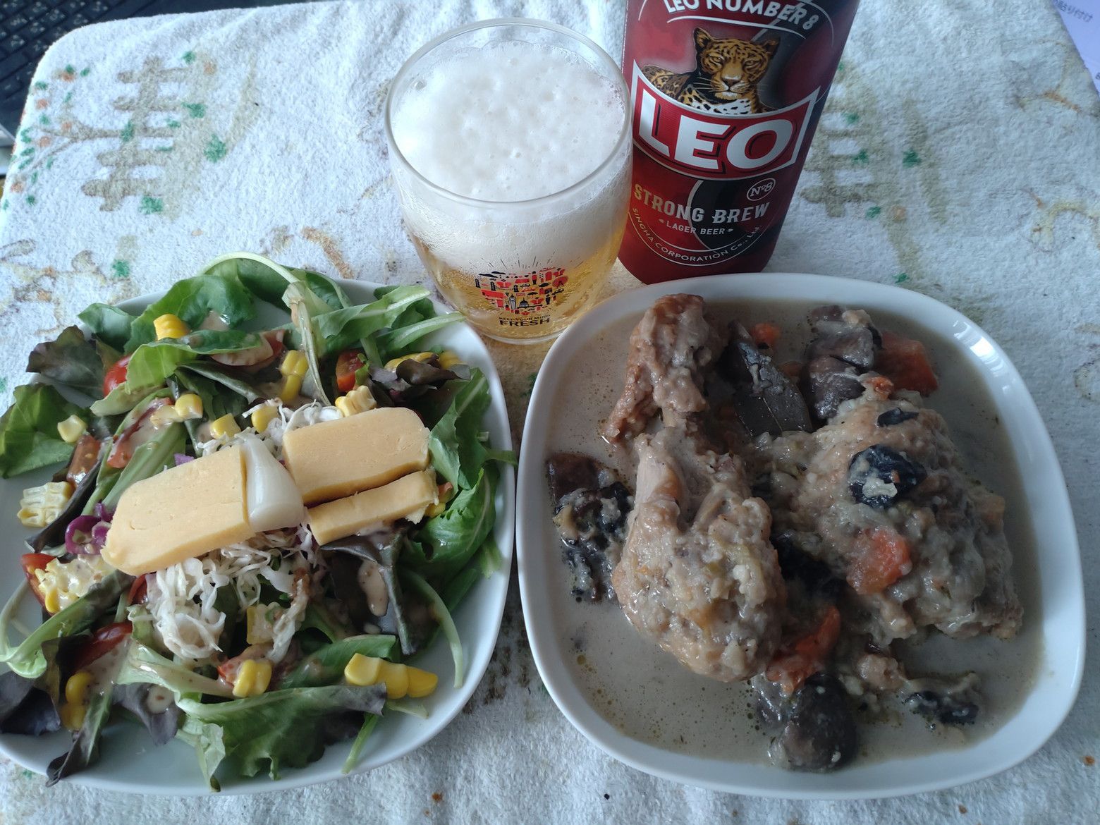 ONE BANGKOKもオープンしましたので、どうなる事やら。 さて!冷蔵庫から取り出して直ぐの状態がこれです。 レンジでチンしてから盛り付けました。 美味しかったぁ!! 何と言っても煮込まれて柔らかくなった鶏肉が、箸で簡単にこの状態になる程なのです。