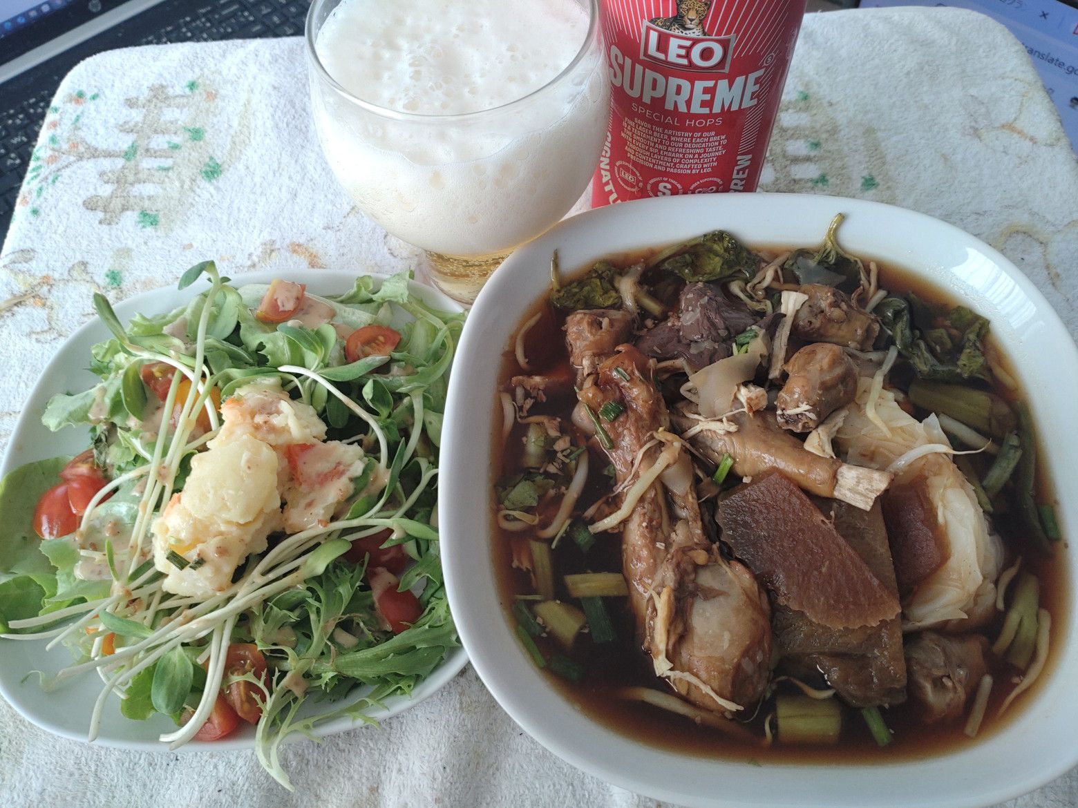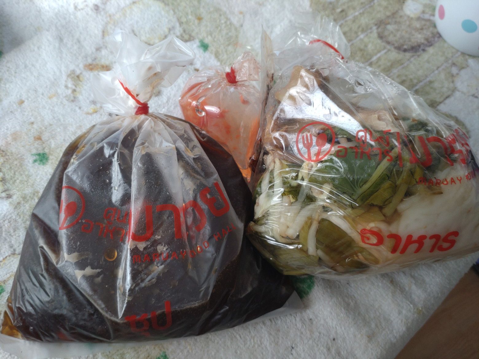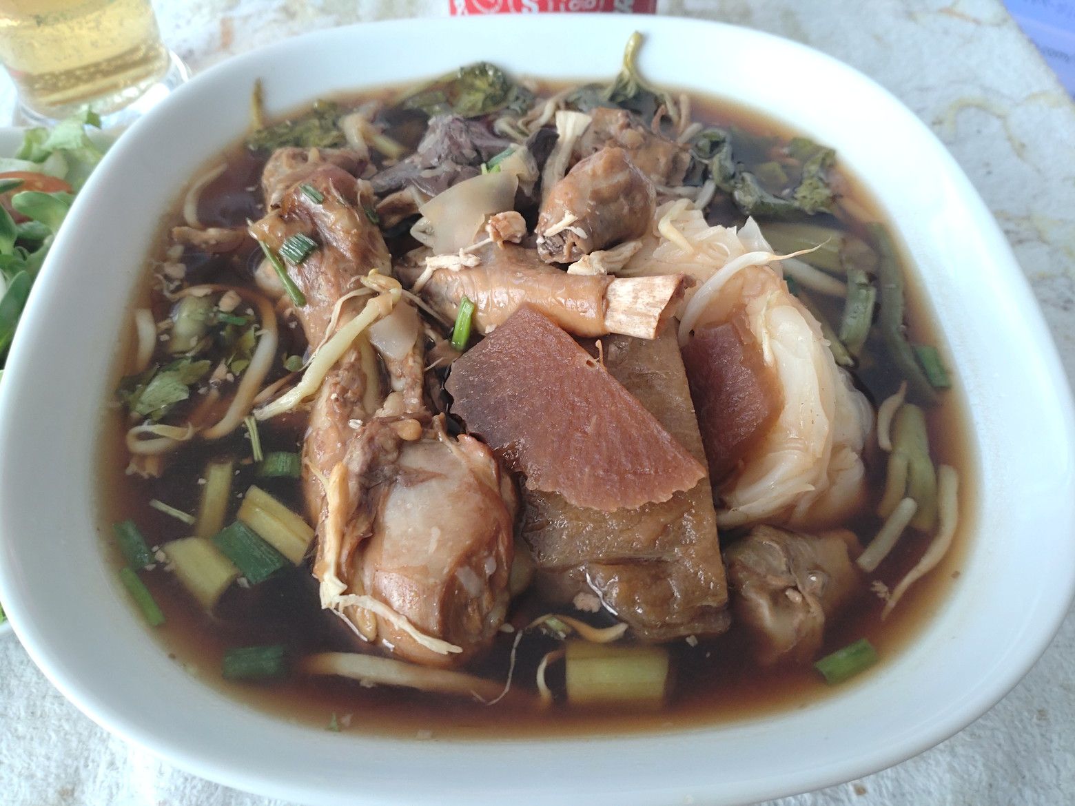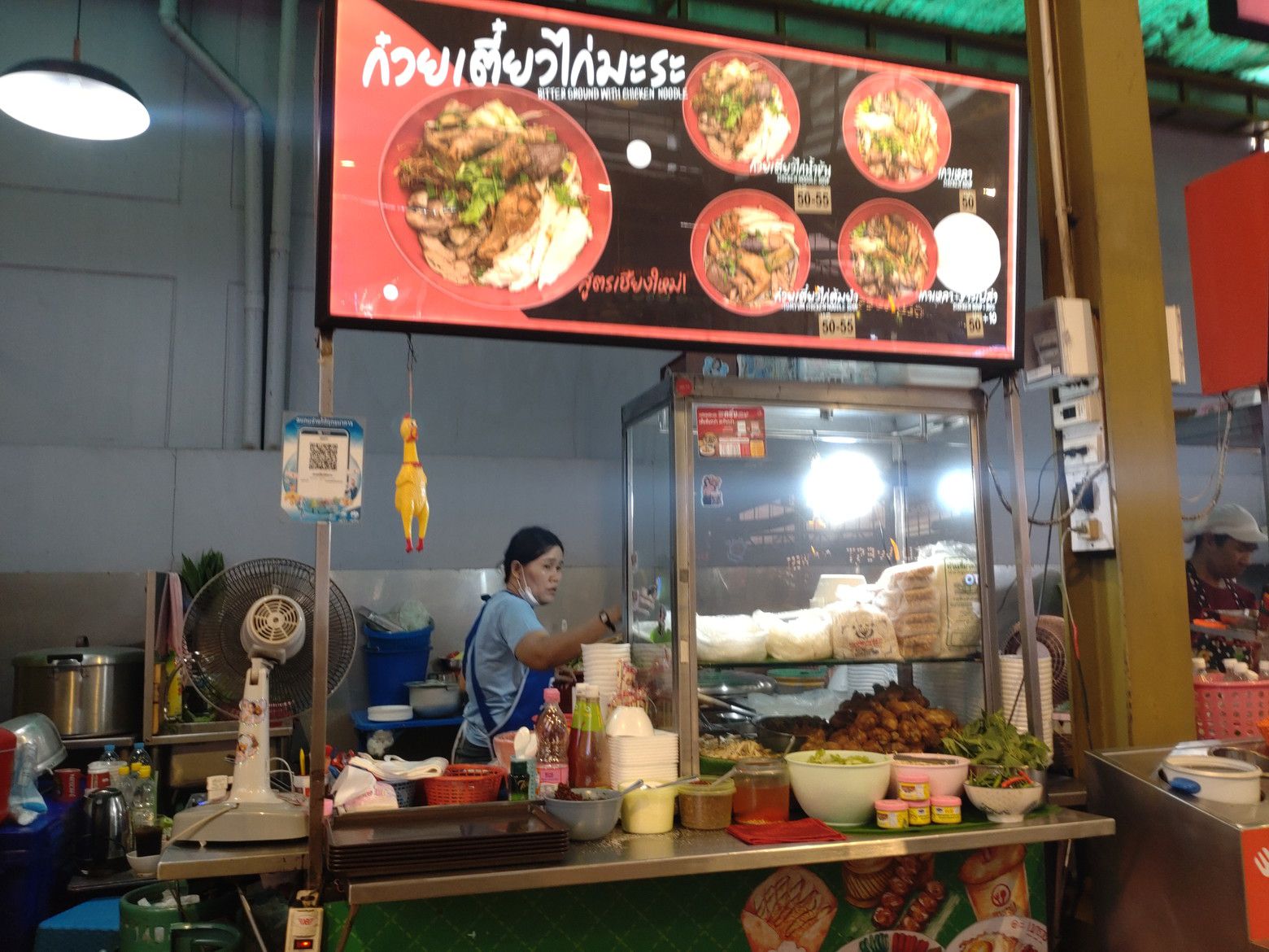 チキンヌードルの店ですね。 これを注文しました。 受け取り完了です。 これが中身です。 最初は、スープの色を見て感じたのは、味が濃そうだなぁ。。。と。 しかし、食べてみると塩辛さは全く無し。