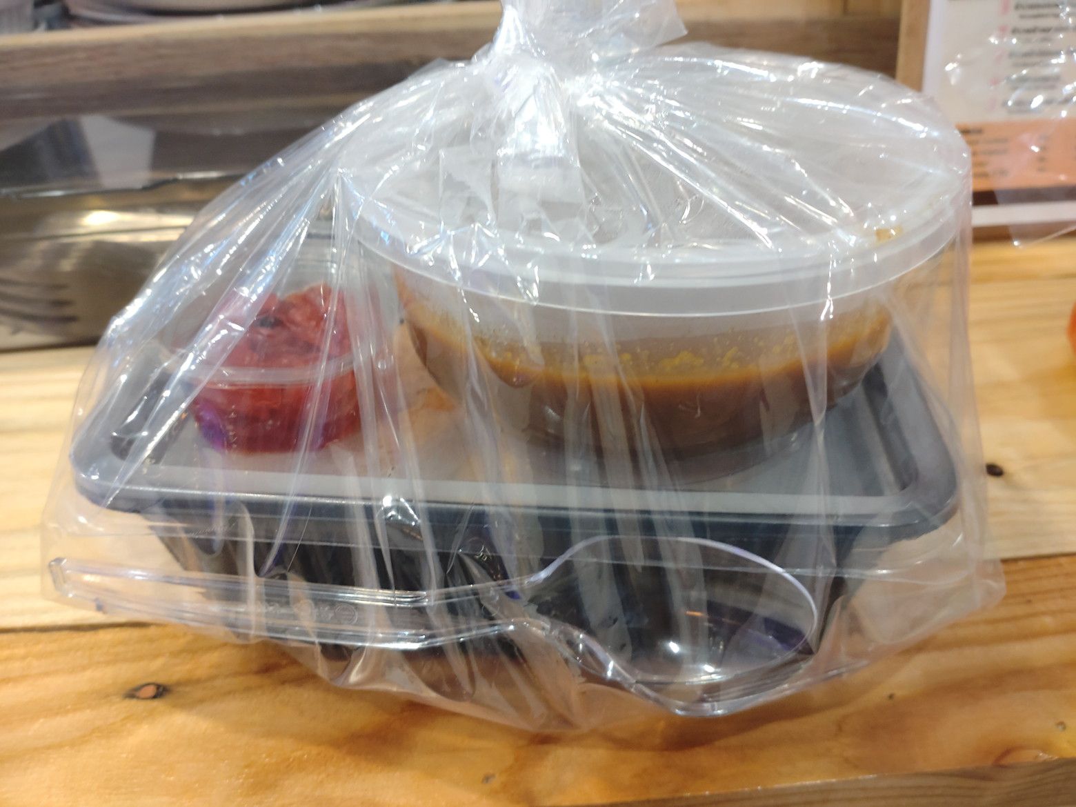 BIG-Cを出てからは。。。 センチュリー ムービープラザへやって来ました。 まずは、少しだけ散策します。 実は、少し興味を持っていることがあるのです。 地下の、トップスがあるフロアーですが、一時は閑散としていたのですが、数か月前に来た際には、小さなレストランが増えていたのです。 期待を持って地下へ向かいます。 この周辺には。。。 小さな店が並ぶようになりました。 そして!こんなカレー屋さんが出来ていました。 この中から選んだのは! これです。 すると、店員さんから「辛さは何にしますか?」と問われたので、上から2段目を指定しました。 丁寧に包んでくれました。