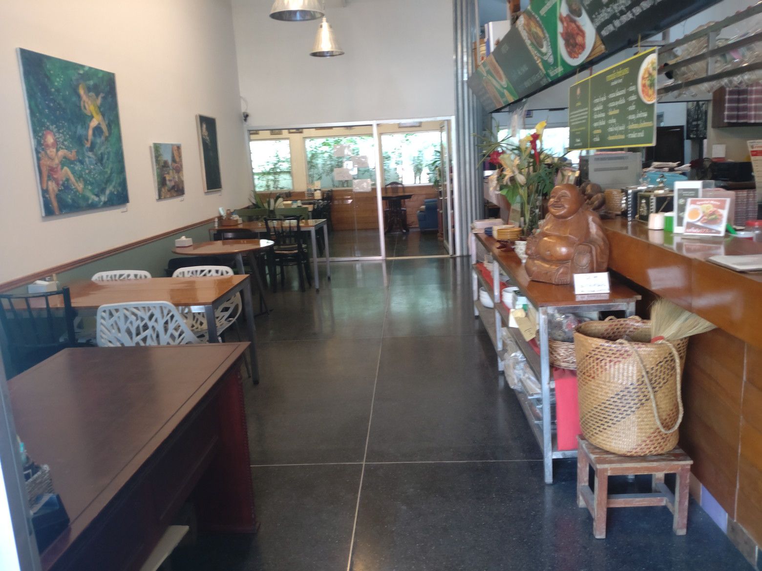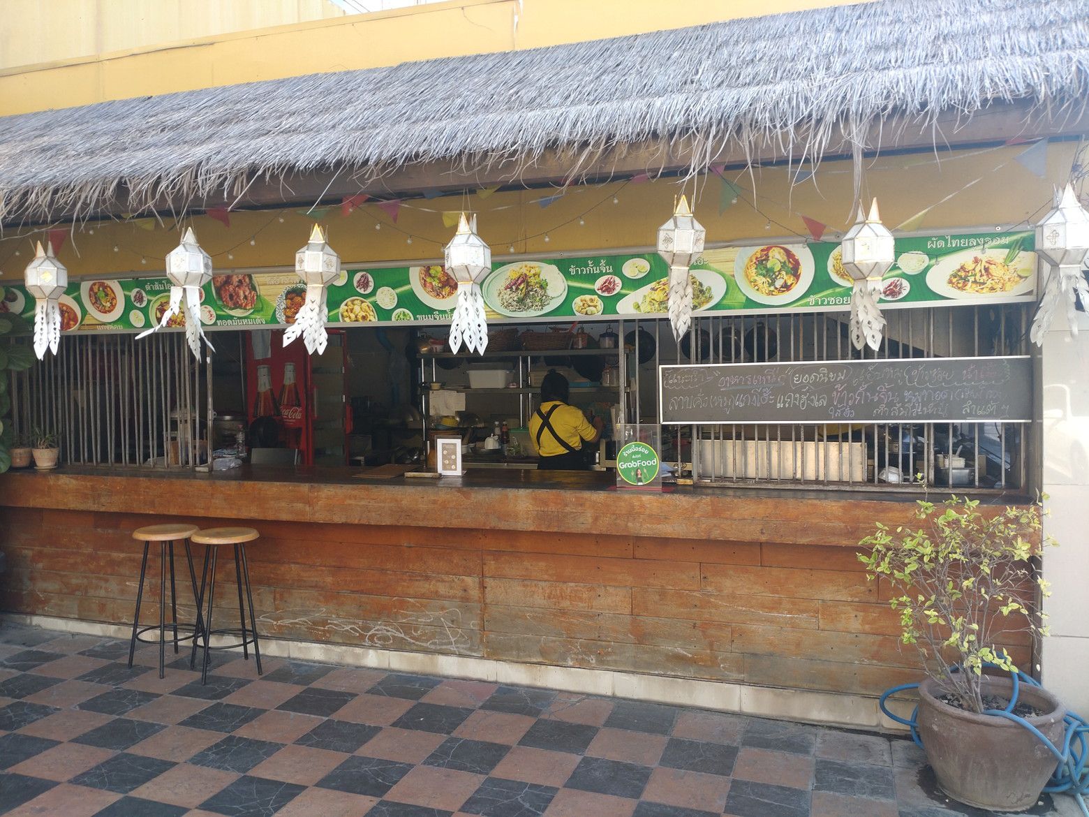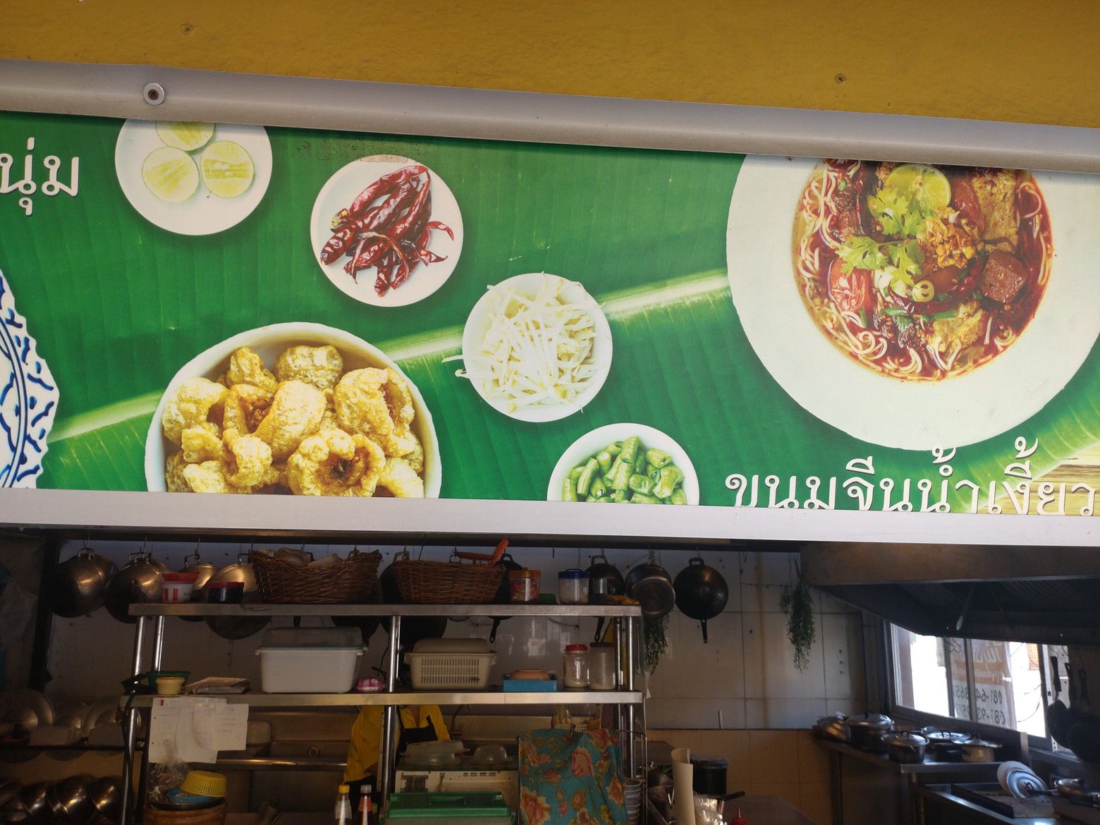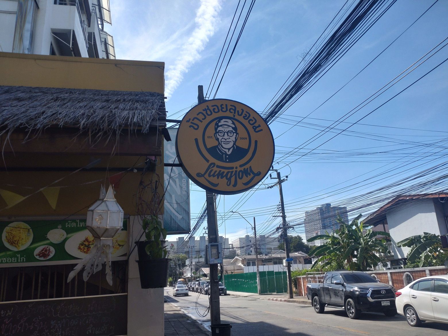 綺麗な歩道を歩いていると、高級住宅地の雰囲気が伝わって来ました。 5分程度で到着です。 店頭にはメニューが無くて。。。 一応、写真で確認してカオソーイガイを持ち帰りで注文しました。 店内はこんな感じです。 すると何と!5分も経たずで受け取り完了です。