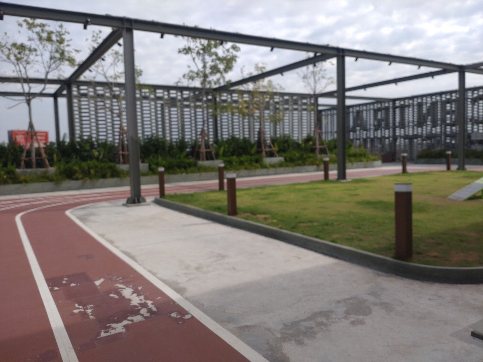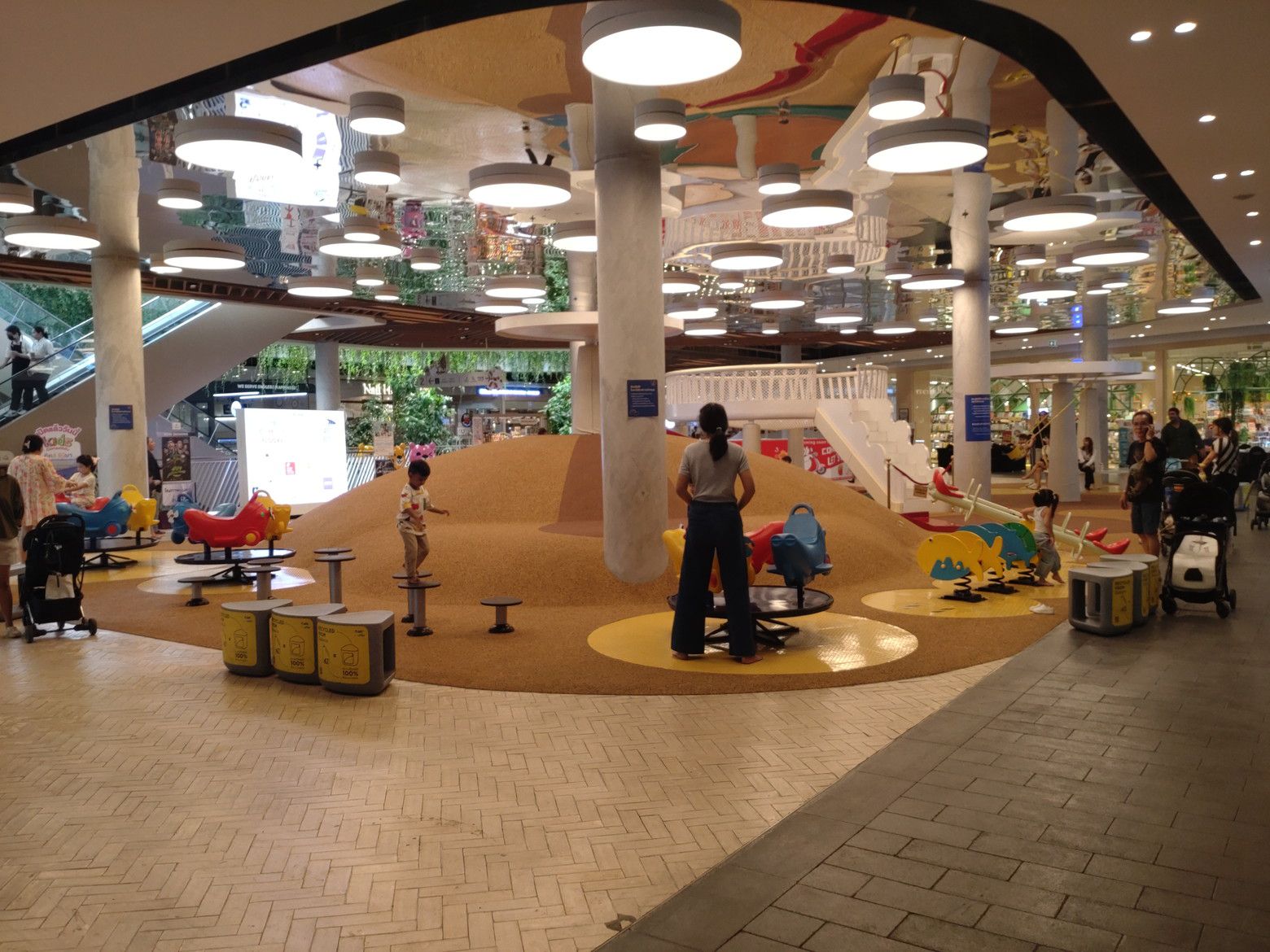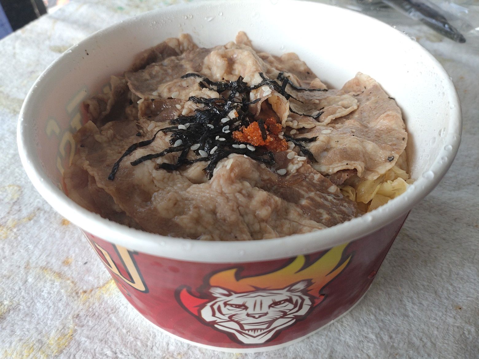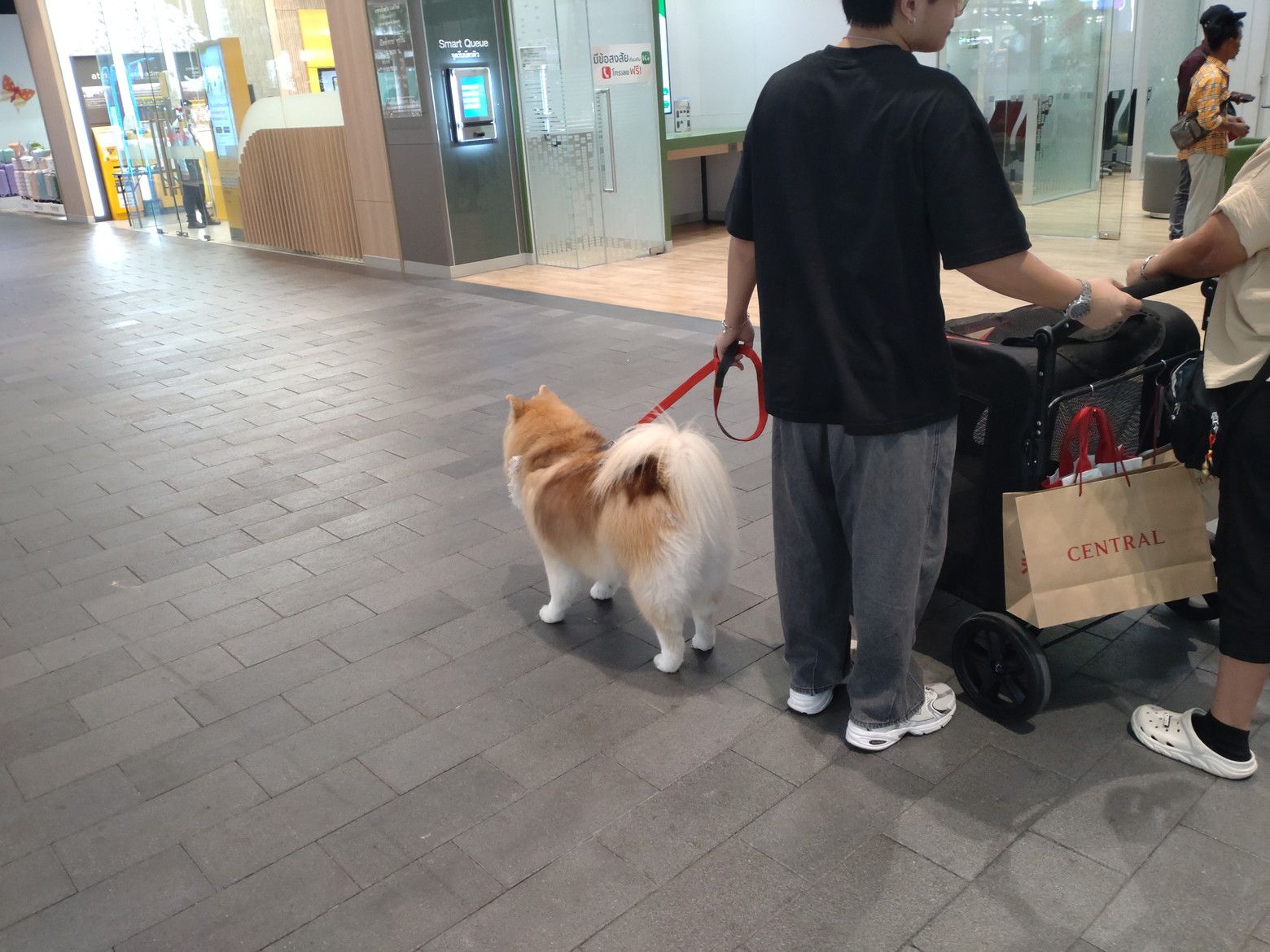 子供の遊び場には、朝早くから遊ぶ子供たちが居ました。 更に上の階には、ウォーキングスペースがあります。 最近は、乾季なので午前中は、少し涼しいです。 そして、所々にはペット連れの方々も見受けられます。 まずは、前半の目標値に達したので、食べ物調達です。 これは、上の階にある小さめのフードコートです。 美味しい料理が揃っています。 今回は、この店にしました。 こんな多くの品揃えです。 和牛の丼を注文です。