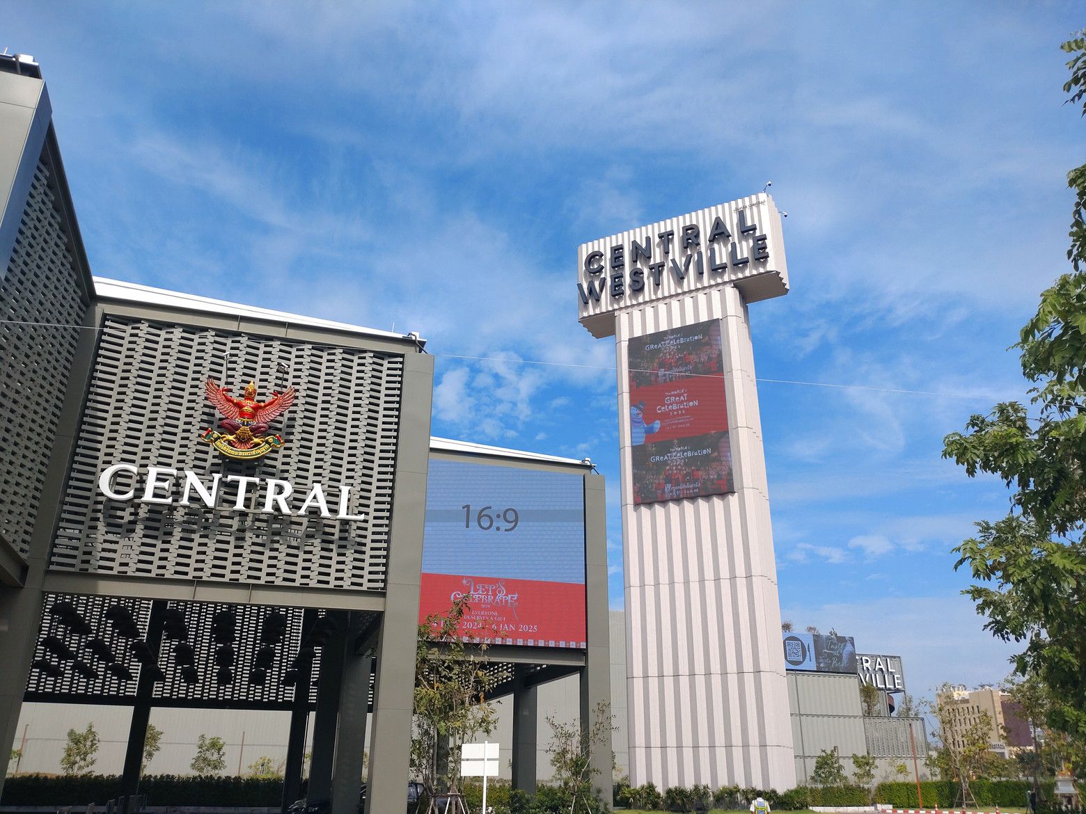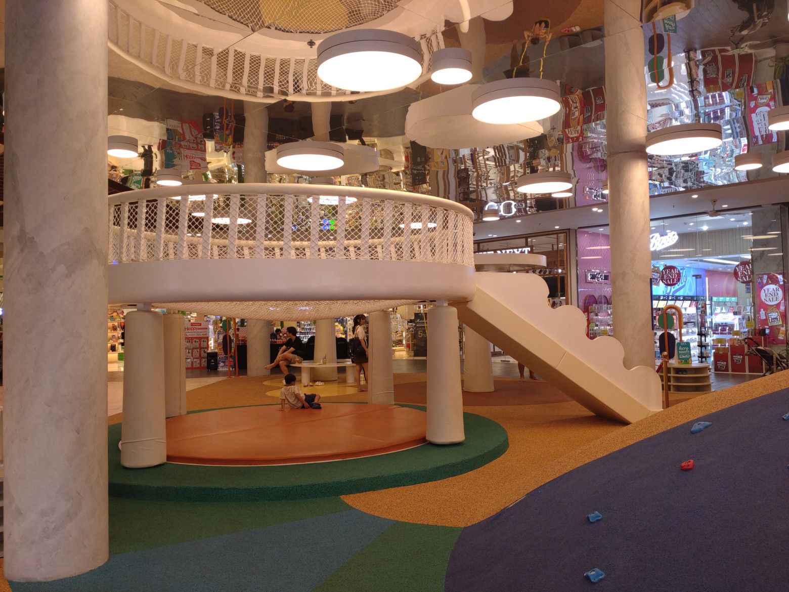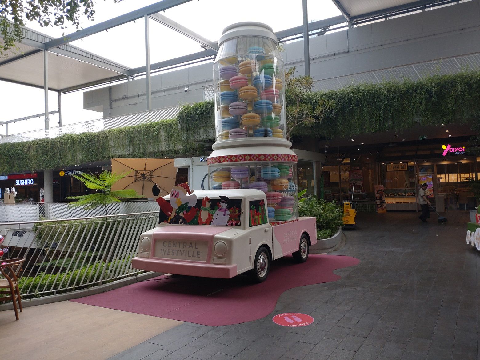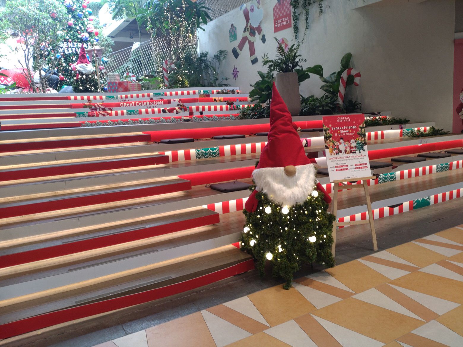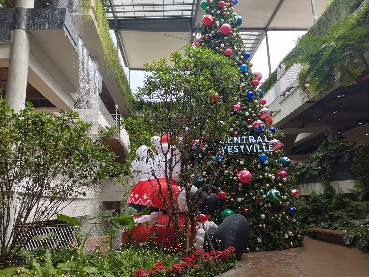 まずは、オープンエアーの場所を歩きます。 歩いていると、サンタを発見です。 そこには、クリスマスツリーですね。