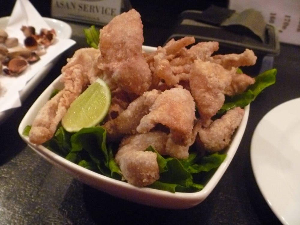 これは、鳥皮のカリカリに揚げ。
