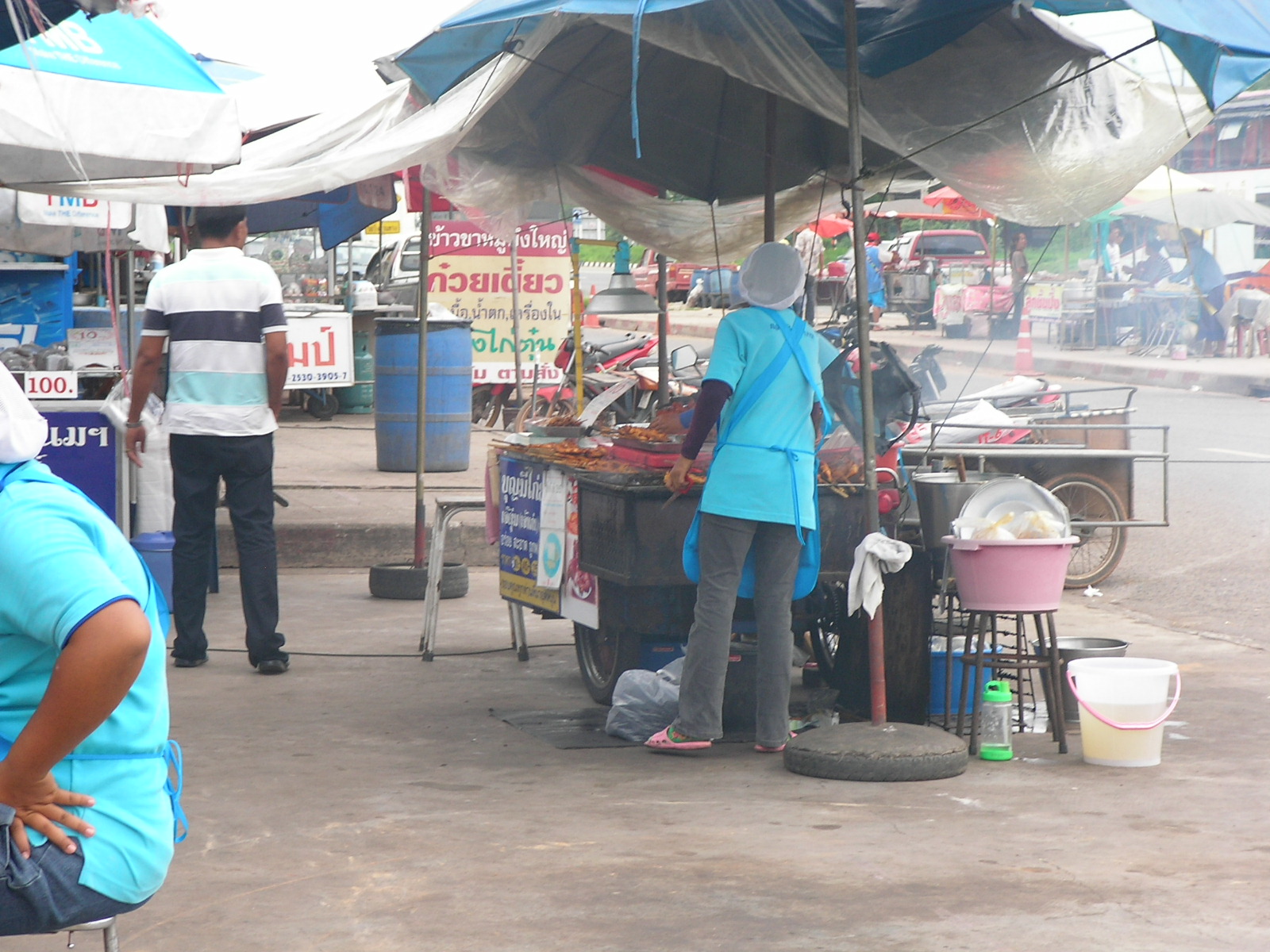 この、ガソリンスタンドの屋台は、お客さんでいっぱいです。