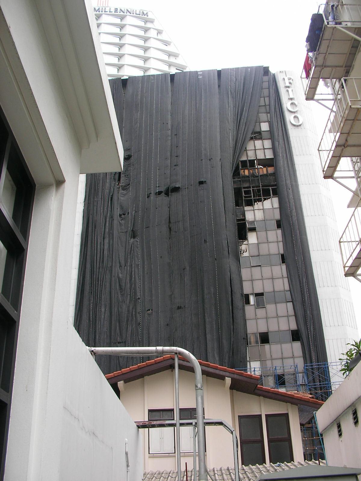 スクムビットのアンバサダーホテルのそばにあったビルも焼けた後、しばらくそのままでしたね。