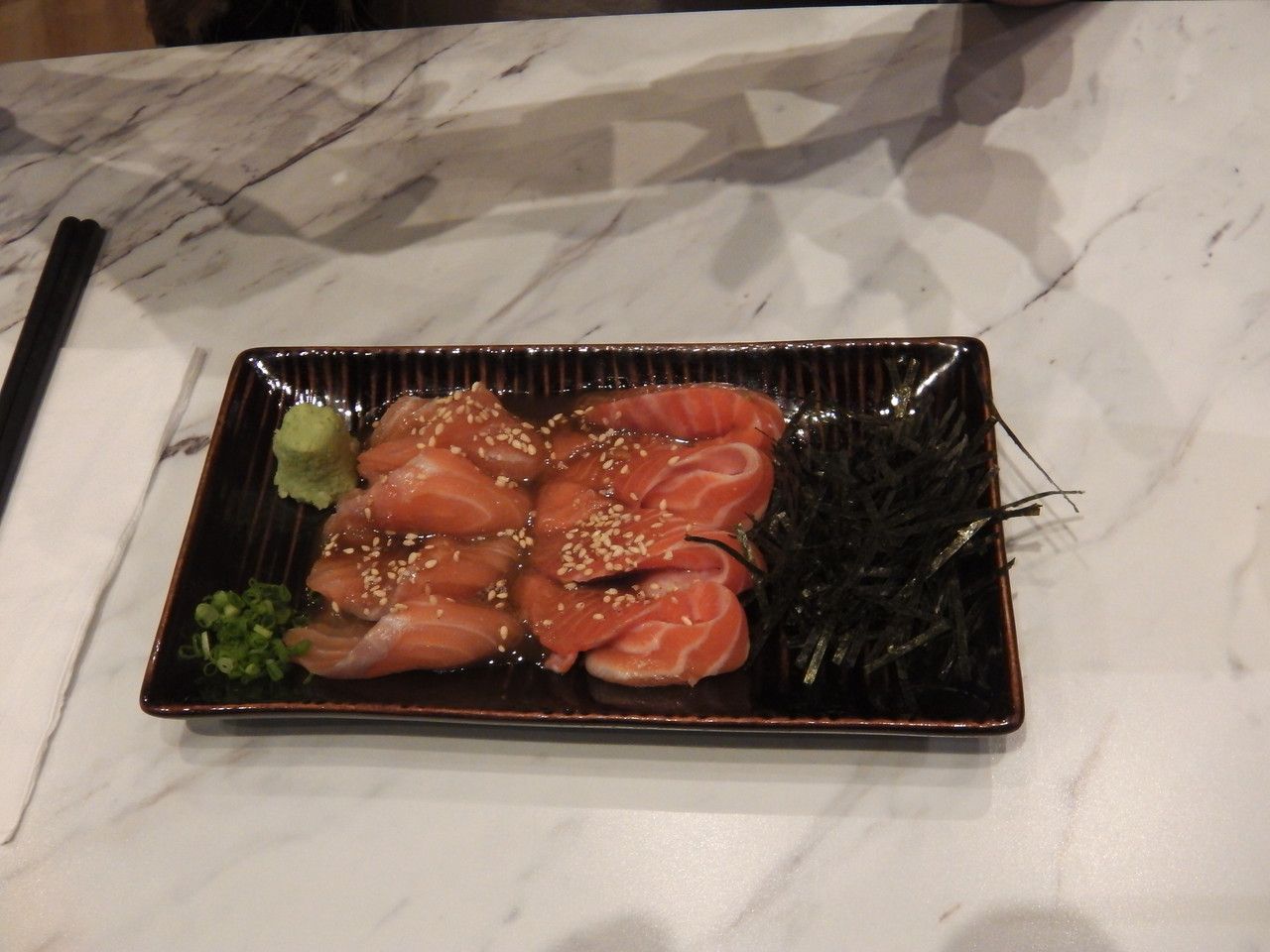 相変わらず、サーモンの刺身。